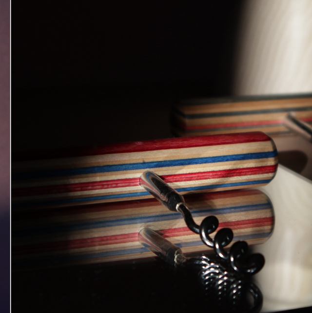 T Kørk ist ein Korkenzieher, der aus recyceltem Holz von Skateboards gefertigt wird. Hergestellt im drechsel Atelier von LHOLZ im Herzen von Potsdam, vereint er Nachhaltigkeit und Handwerkskunst.